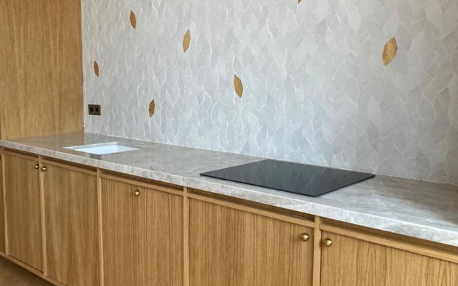 Cuisine design en chêne et plan de travail en pierre à Nice