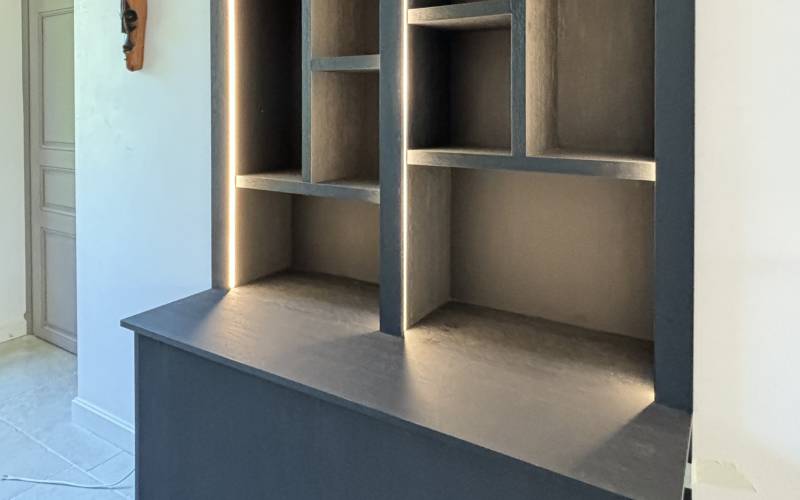 Vous recherchez un agenceur pour la réalisation de votre bibliothèque sur mesure en placage noir à Lacenas près de Lyon ?