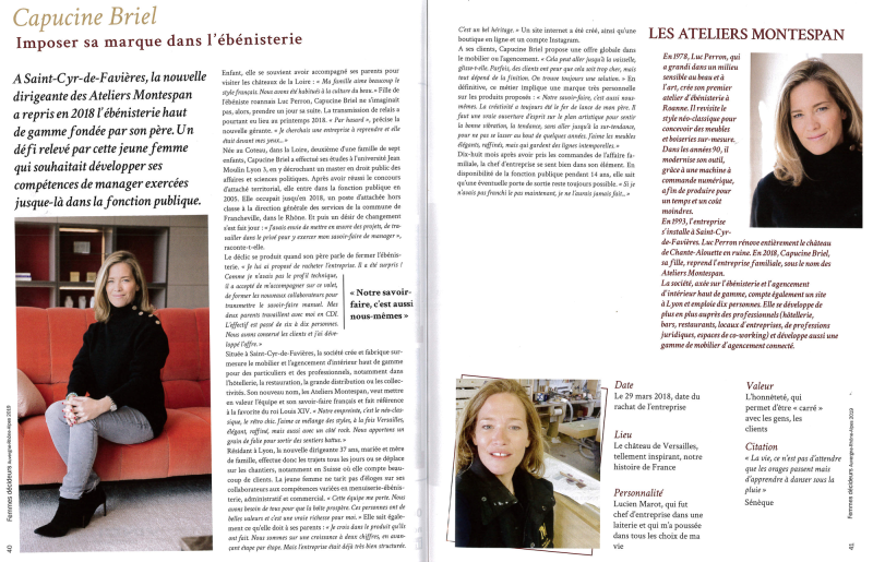 Making off le mardi 05 novembre 2019 du shooting photo en qualité de lauréate pour le trophée des femmes décideurs 2019 – LE TOUT LYON – 38 femmes sélectionnées – 5 prix décernés lors de la soirée du 2 décembre 2019 à la CCI de Lyon. Encore un peu de patience donc pour les résultats… Quoiqu’il en soit nous sommes déjà très flattée d’être parmi les lauréates et remercie celles et ceux, partenaires et/ou journalistes, qui ont pensé aux Ateliers Montespan ! Une belle mise en lumière pour le savoir faire de mes équipes qui œuvrent chaque jour au service du Beau, du Style et de l’Elegance à la Française.