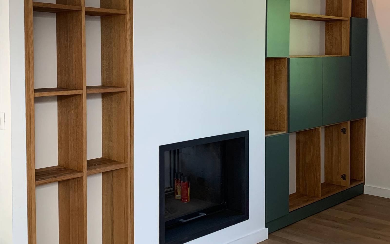 Nous vous présentons ce nouveau projet de bibliothèque meuble télévision sur mesure en bois laqué que nous avons livré chez nos charmants clients lyonnais.