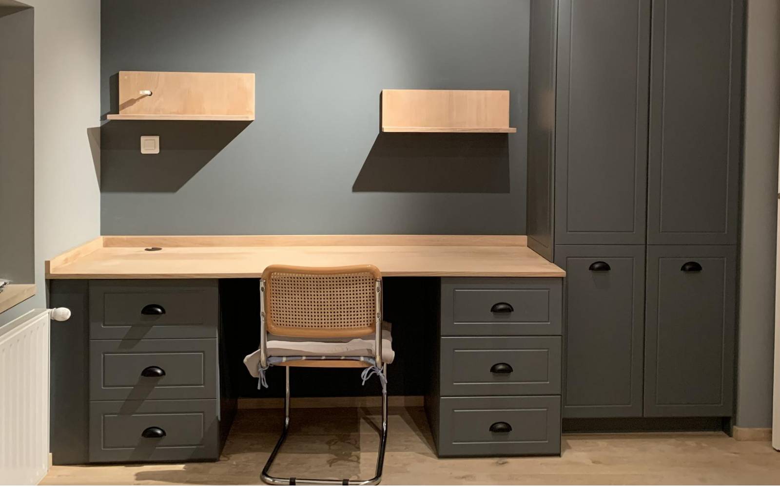 Bureau sur mesure en bois laqué avec plateau en chêne naturel à Lachassagne