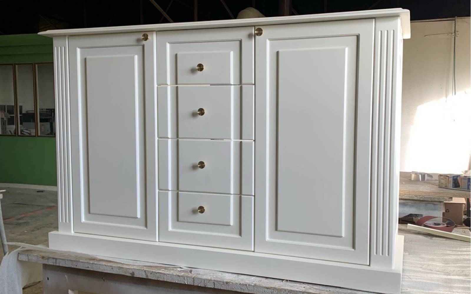 Réalisation d'un meuble d'entrée sur mesure en bois laqué à Neuilly sur Seine près de Paris